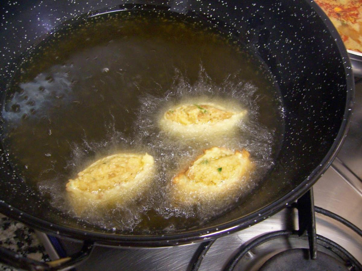 Vamos cogiendo cucharadas de la masa y friendo en abundante aceite bien caliente.