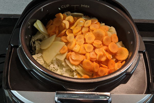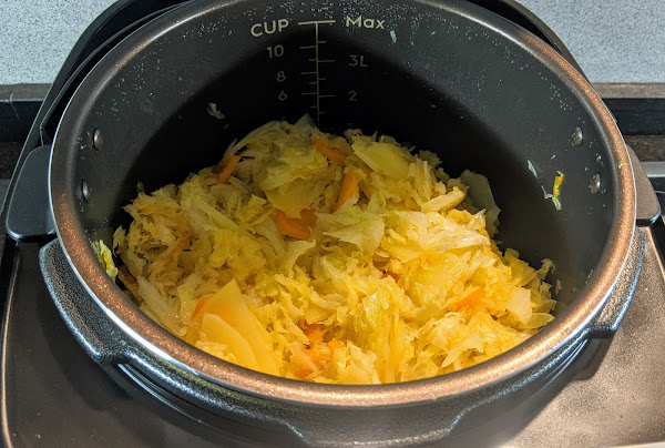 Y listo el repollo. Esta olla tiene la particularidad de que va despresurizando de manera inteligente, así, cuando termina el tiempo, ya se puede abrir
