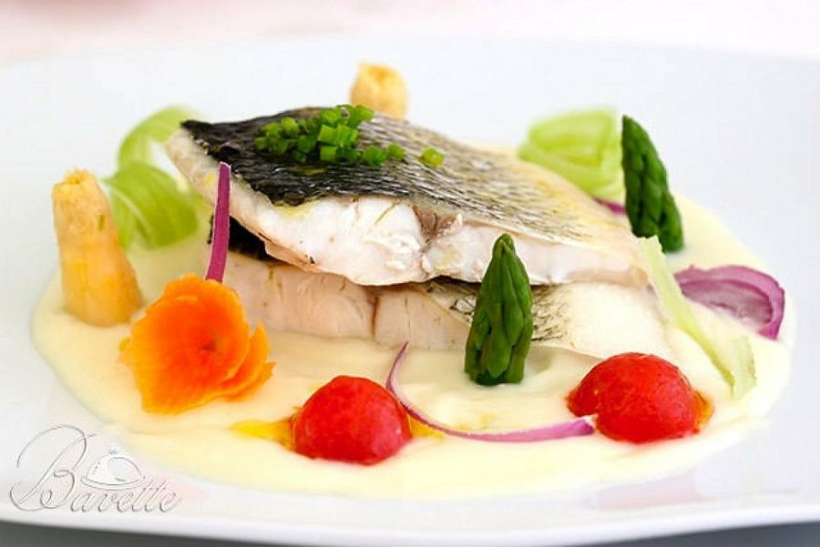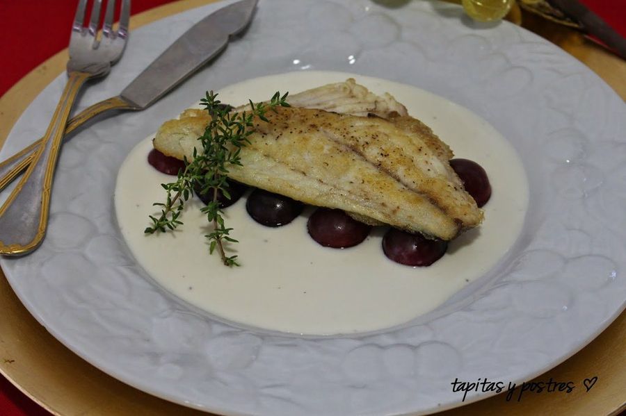 Esta receta del blog Tapitas y Postres es una idea perfecta para servir la noche de Nochevieja puesto que en la salsa que acompaña al pescado se combinan dos elementos símbolo de ese día: las uvas y el cava. En este caso, el pescado es dorada y esta receta es una forma de cocinarla de forma diferente, puesto que la manera tradicional suele ser a la espalda o a la sal.Lubina salvaje con crema de espárragos y crudités de verdura