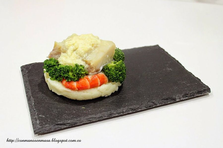 Este pescado blanco también es un clásico de los servidos en Navidad. En la receta del blog Las Recetas de Finuca se cocinan los lomos al horno rellenos con gambas y acompañados de una guarnición de patatas panaderas, cebollitas y perejil fresco.Bacalao con salsa de mostaza sobre timbal de patata, langostinos y brócoli