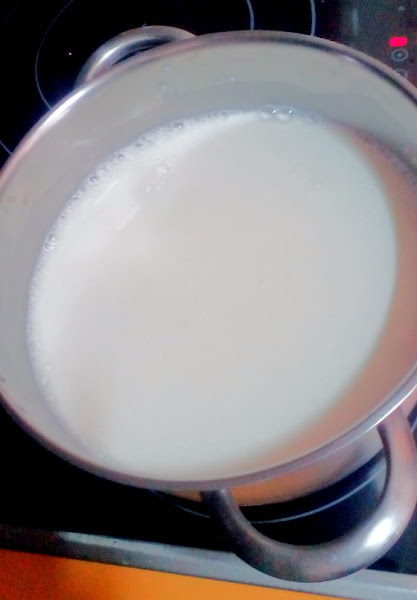 Es una receta muy muy facilita, ya veréis. En una olla ponemos la leche, es importante que la leche sea entera, y añadimos el zumo de un limón (para ayudar a que cuaje). La ponemos a calentar hasta que hierva, hay que llevar cuidado cuando empiece a hervir de que no se nos salte, teniendo esto controlado ya está. Una vez que la leche hierva removeremos sin parar, hasta que veamos que la leche va cuajando.