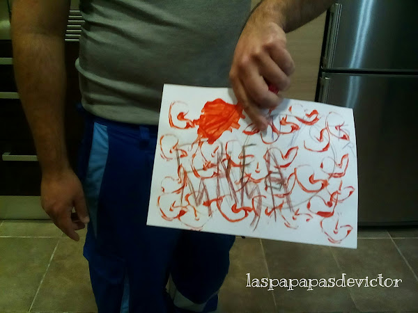 Lo que había echo de estampar corazones con un rollo de papel y después cómo había escrito los nombres de cada uno de la familia