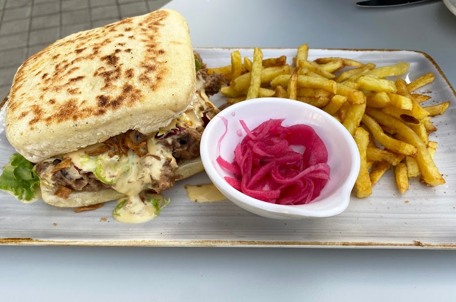 El boucata también nos pareció espectacular. Este local es muy famoso por sus costillas, hechas a baja temperatura, ya que están muy tiernas, y este bocadillo está hecho con la carne deshuesada de las costillas y mezclada con lechuga y una salsa secreta hecha especialmente para la ocasión. Hay que añadir un poquito de la cebolla encurtida que ponen en el plato y que está ligeramente picante, para terminar de dar el toque delicioso al plato.