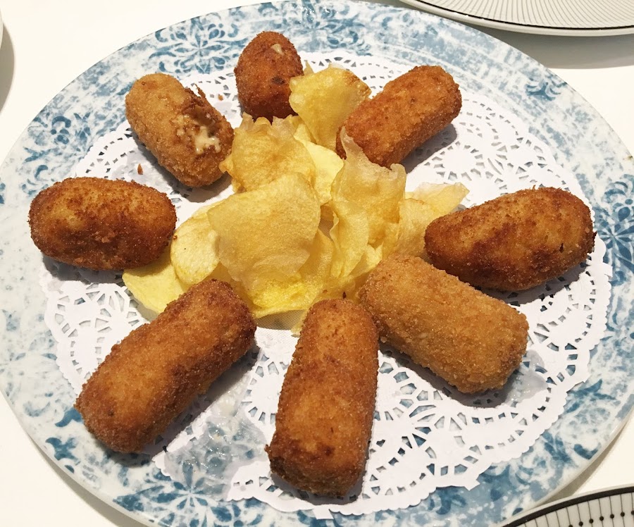 También pedimos unas croquetas variadas, de diferentes sabores dependiendo de lo que tengan en cocina ese día, nos tocaron de jamón, de setas (¡espectaculares!) y de queso azul con cecina. El otro entrante que pedimos fue el pulpo a la brasa, que viene acompañado de alioli casero, por su gran fama, ya que nos lo habían recomendado varias personas que habían estado ya. Nos pareció de los mejores pulpos a la brasa que hemos comido, muy suave y tierno.