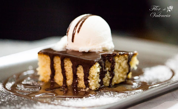 - Naranja y chocolate de Flor de Valencia. ¡MA-RA-VI-LLO-SO! Dicen que un buen menú debe acabar con un buen sabor de boca y sin duda este postre lo consiguió. ¡Qué delicia de postre! Una crema de naranja super fina con sabor a naranja de verdad y no a químicos. Con tropezones de la coca de llanda y unos gajitos de naranja en vivo. Servido con salsa de chocolate caliente y una bola de rico helado de chocolate con trocitos de chocolate. Lo único que me dio "rabia" (éste fue el postre que me pedí yo) es que me tocó compartirlo con todos jajajajaja