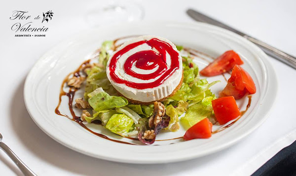 - Ensalada con queso de cabra, nueces, miel y salsa de frutos rojos. Soy la loca de las ensaladas, lo confieso, y en casa cada comida o cena está acompañada con una. Al principio íbamos a pedir la valenciana, pero mi hijo mayor es un ratoncillo y le llamó lo del queso de cabra. La verdad es que está combinación nos encantó a los 5 y ya se la hemos copiado en casa jijijiji.
