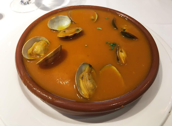 El primer entrante que nos trajeron fueron unas coquinas, típicas de Huelva, al ajillo. Es muy difícil encontrarlas en Madrid y en este restaurante las hacen riquísimas.