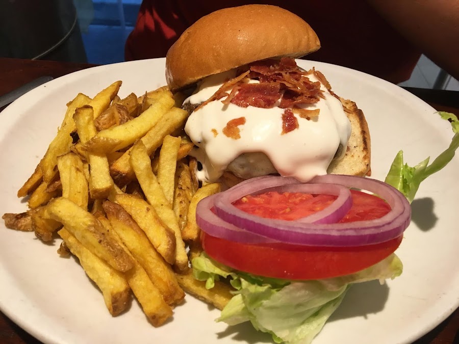 Después, pedimos dos hamburguesas que acabamos compartiendo para poder probar las dos. Todas las hamburguesas vienen acompañadas de patatas fritas caseras y te ofrecen la posibilidad de añadir lechuga y tomate en todas si te apetece (es gratis). Pedimos la carne en ambas poco hecha y estaba a nuestro gusto, otro punto a favor, porque en otros muchos restaurantes suelen pasarla más.