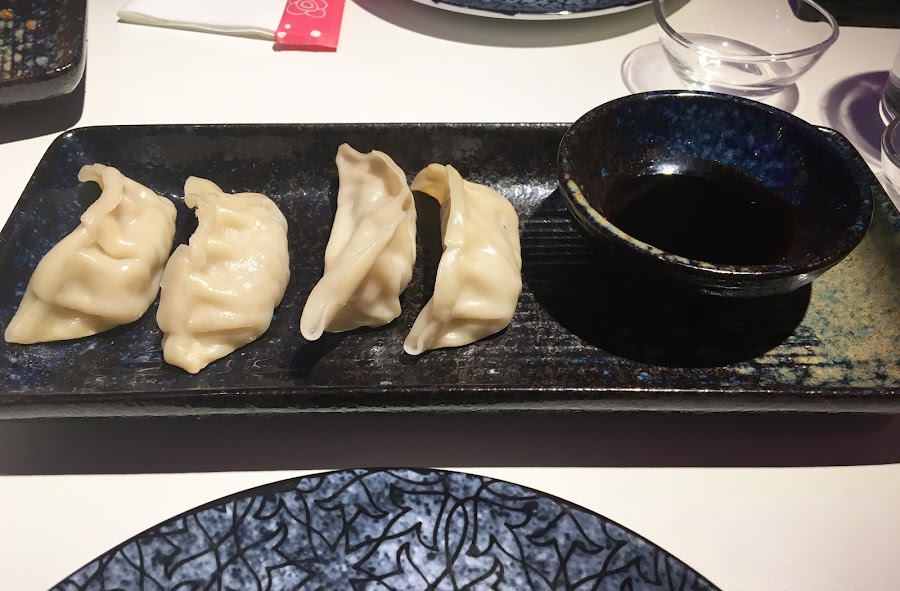 Pedimos varios platos para compartir para poder probar más, lo primero que nos trajeron fueron las gyozas de carne a la plancha con salsa amakuchi, que solemos pedir casi siempre porque nos encantan las gyozas. Estaban ricas y jugosas.