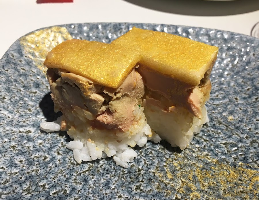 Por último, probamos también un poco de sushi, en este caso dos variedades distintas, las primeras, eran los Oshi sushi, dos nigiris con foie que estaban buenísimos. Los segundos fueron los crispy crab, elaborados con carne de txangurro, langostino en tempura, mayonesa japonesa, espárrago y masago. Muy originales ambos y muy ricos, sí os los recomendamos porque son sabores diferentes a lo que estamos acostumbrados a probar cuando comemos sushi.