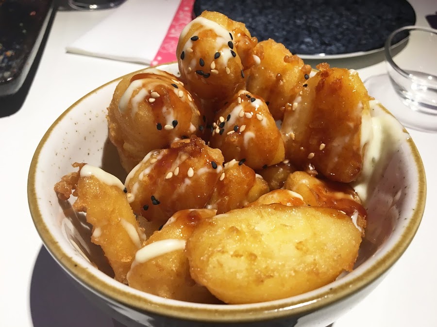 Después, pedimos (cómo no) las japobravas, que están tempurizadas con alioli de wasabi y salsa japobrava. Por nuestra adicción a las patatas bravas, las pedimos siempre para probarlas, la verdad que tampoco nos convenció demasiado la salsa japobrava, porque no picaba y resultaba un poco dulce, no las pediríamos de nuevo, la verdad.