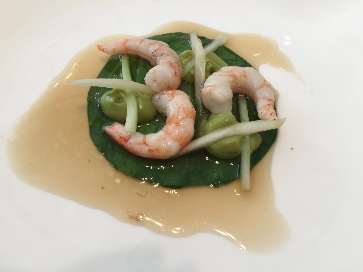 Crema de aguacate, perifollo, pomelo y helado de plátano: el helado de plátano no suele gustarme demasiado y tampoco lo hizo en este caso, además, la repetición de la crema de aguacate tampoco ayudó.
