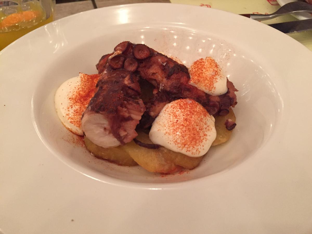 Pulpo con patatas y allioli: el más flojo de los platillos que pedimos. Estaba rico, pero le faltaba un toque más picante, ya que el allioli era bastante suave.