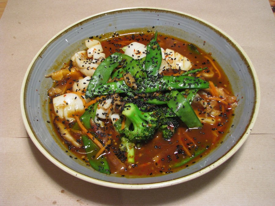 Los macarrones de sepia nos sorprendieron por su originalidad, son un divertido trampantojo con inspiración oriental, donde las verduras y la soja completan el plato para probar la sepia de una forma muy original y diferente a la que estamos acostumbrados en nuestro país.