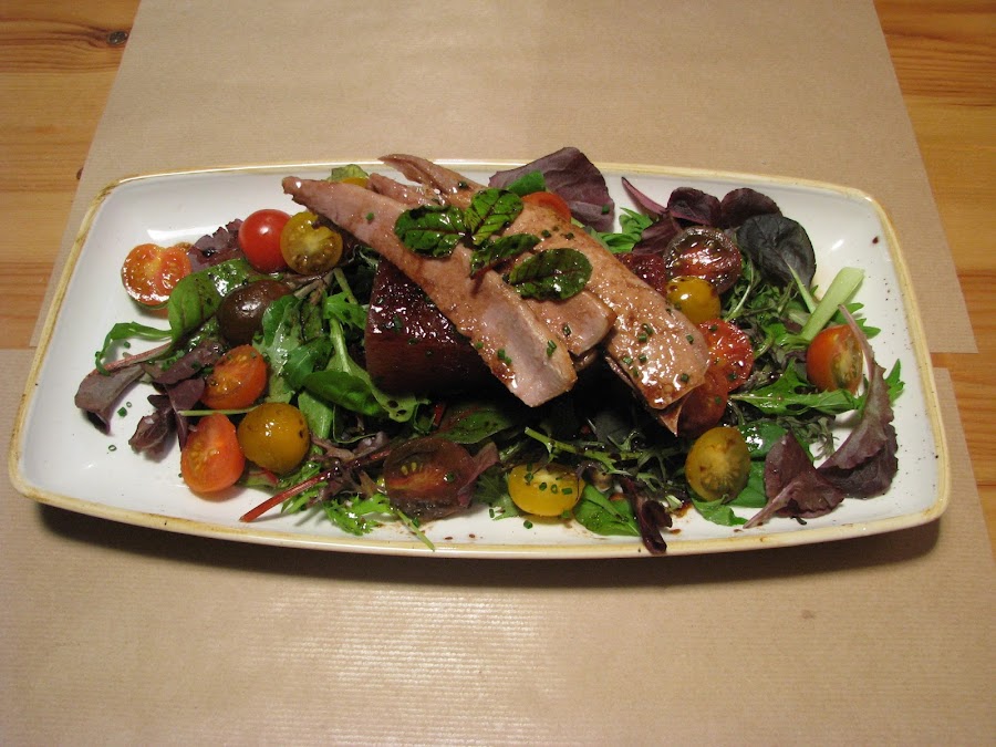 Uno de los platos que más nos sorprendió fue la ensalada de ventresca y sandía caramelizada, porque la sandía aporta un toque dulce que contrasta con el sabor de la ventresca, sin duda la mezcla es espectacular, además nos pareció una idea muy original.