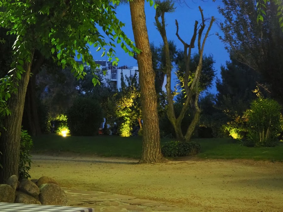 Por con este calor, nosotros cenamos fuera, en su terraza que, como ya os he dicho antes, está en medio de un casi-bosque (una finca de inmensas dimensiones con árboles de todo tipo).