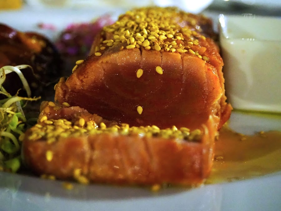 A continuación llegaron los principales: tataki de atún y chuletillas de cordero.