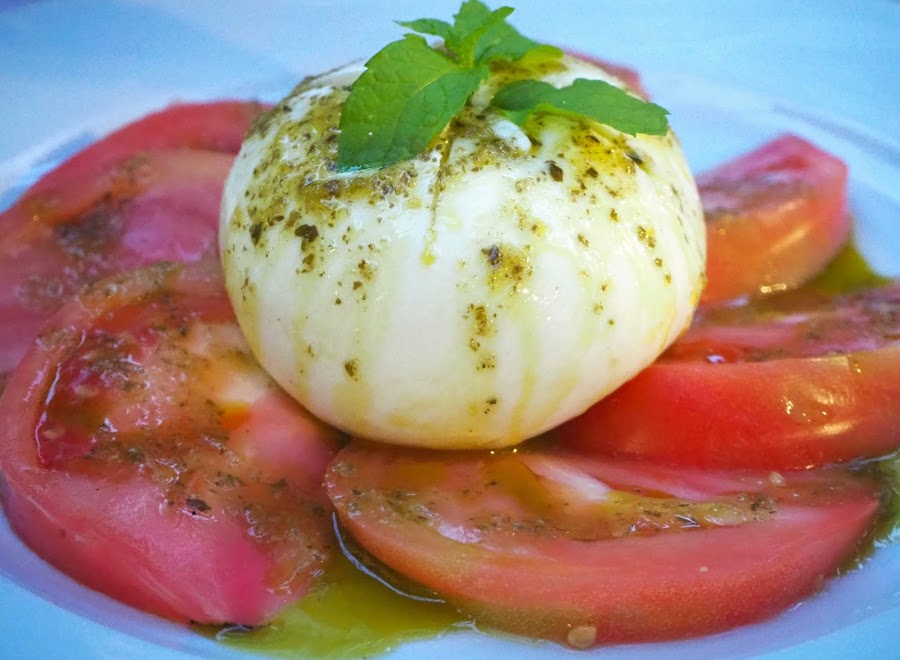 Seguimos con una Burrata Pugliese con Tomate rosa: increíble. La Burrata era 100% italiana y el tomate estaba exquisito incluso solo. Sin duda, un producto espectacular.