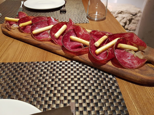 De primero pedimos un entrante para compartir, tabla de cecina de León, muy buena la cecina, se veía la calidad y sabor, además de ser un plato suficiente para los dos por un precio de (13€).