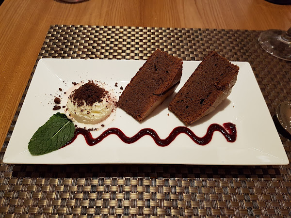 Para acabar no podíamos marchar sin pedir un postre cada uno, para ella pidió Brownie con helado, no le gusto mucho ya que parecía más bien bizcocho que brownie ya que le faltaban las nueces. Yo pedí coulant de chocolate negro con helado de fresa y perlas de chocolate, a mi me gusto mucho estaba muy bueno con un emplatado muy chulo, me sorprendió.