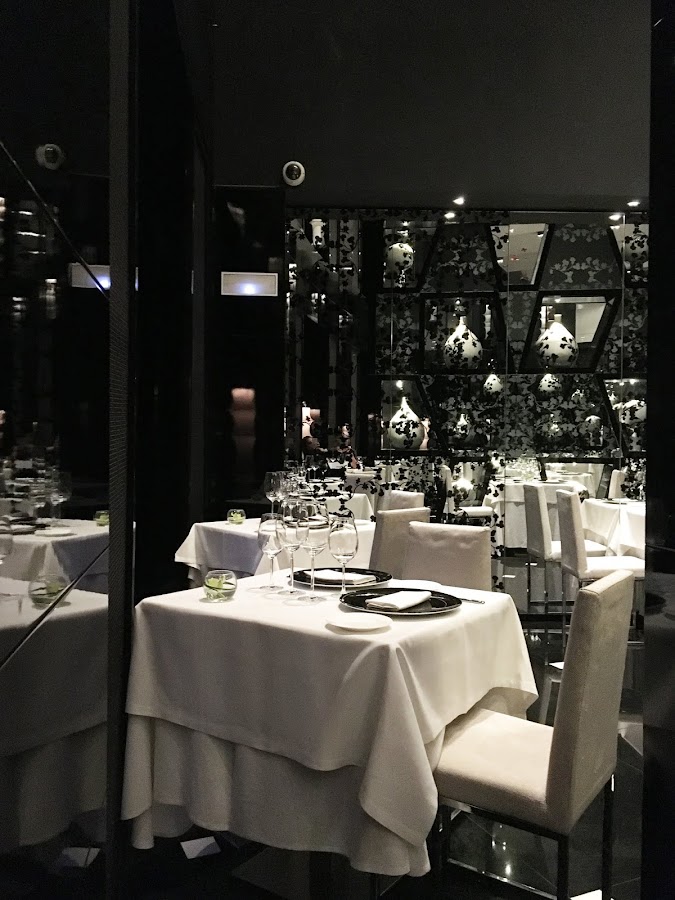 Está decorado de forma moderna, en dos tonos: blanco y negro, muy luminoso y con grandes cristaleras para poder ver las vistas, que son la mayor atracción del restaurante.