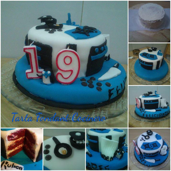 Y, como estamos de cumpleaños, vamos a celebrar también el de un futuro cocinero. Para él es esta tarta de fondant que por dentro lleva un rico bizcocho red velvet: