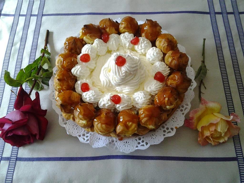 Hojaldre, pasta choux, crema pastelera, nata montada (crema de leche), caramelo... ¿os apetece? Pues todo esto junto se llama Tarta Saint Honore y nos la ha hecho Catina, de La cocina de Catina. No me digáis que no tiene buena pinta. Según ella no es tan difícil como parece, ¿nos atrevemos? Yo me lo voy a pensar, os lo aseguro: