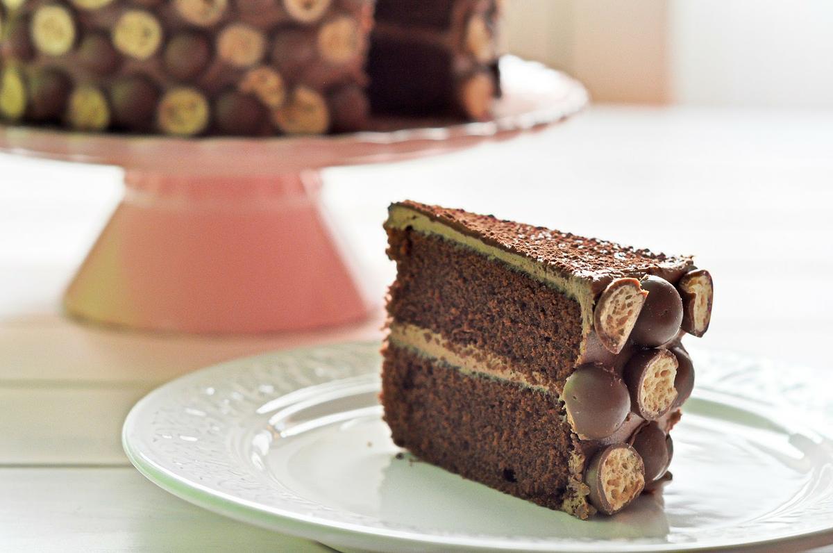 Y he dejado para el final la tarta de chocolate con chocolate, rellena de chocolate. Lo siento, chicos, no concibo una tarta (y casi ningún dulce) sin chocolate, soy así de simple y adicta. Se llama tarta de leche malteada porque está hecha con esta leche que contiene malta de cebada, harina de trigo y leche en polvo. Parece que se usa en la elaboración de diversos dulces y sospecho que en los famosos Malteesers (bueno, confieso que esto me lo estoy inventando según escribo). Bueno, que yo, quiero un trocito de esta tarta porque mirad qué aspecto tiene: