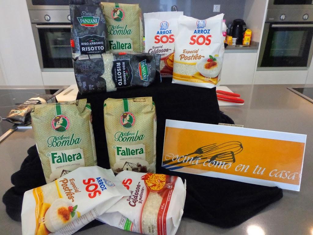 Comentaros que el taller fue patrocinado por el Grupo arrocero Ebro, los cuales colaboraron con diferentes tipos de arroz; cada uno pensado para una receta distinta, los cuales nos obsequiaron con arroz Bomba “Fallera”, arroz Arborio “Panzanni”, arroz especial para caldosos y melosos “SOS” y arroz especial postres “SOS”.