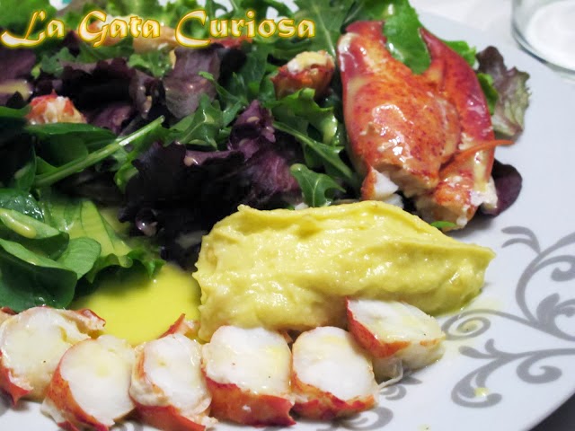 Ensalada de bogavante con vinagreta de naranja y mayonesa de almendras