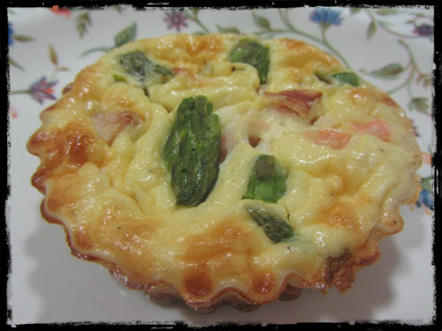 6. Sacamos del horno nuestras bases de las mini quiches y volcamos sobre cada una de ellas la mezcla de pavo y queso que acabamos de hacer.