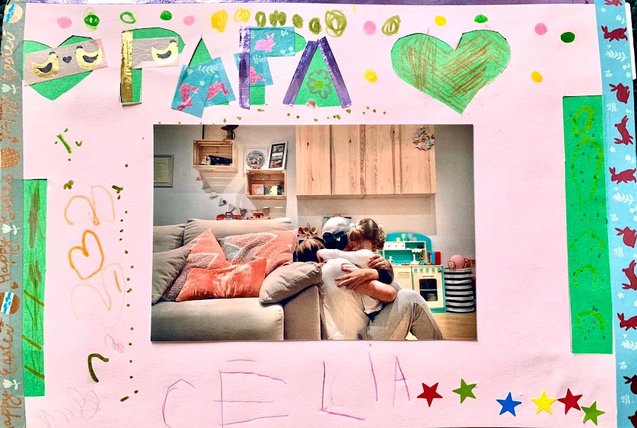 Y como no faltaba mi grande que quiso hacer un cuadro con el retrato de él y de su papá