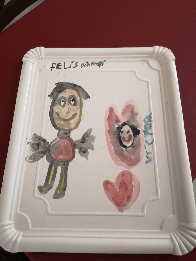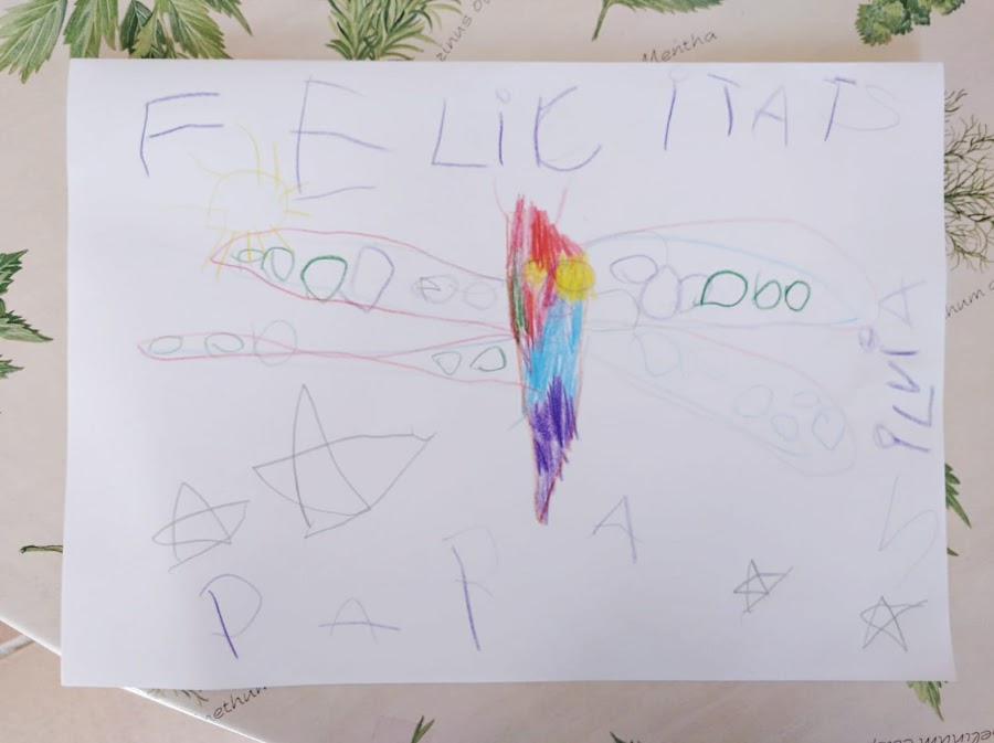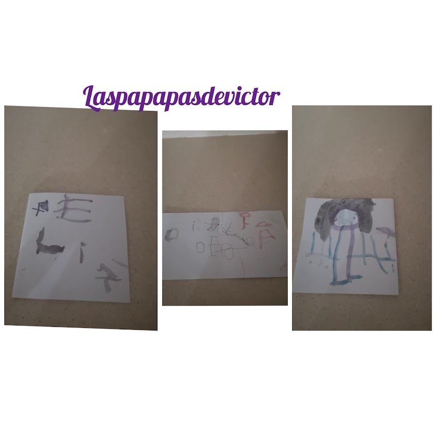 Esta es de mi peque de 4 años, se trata de una postal la escribió el sólito "feliz día papá y firmaba dego"