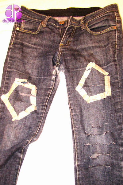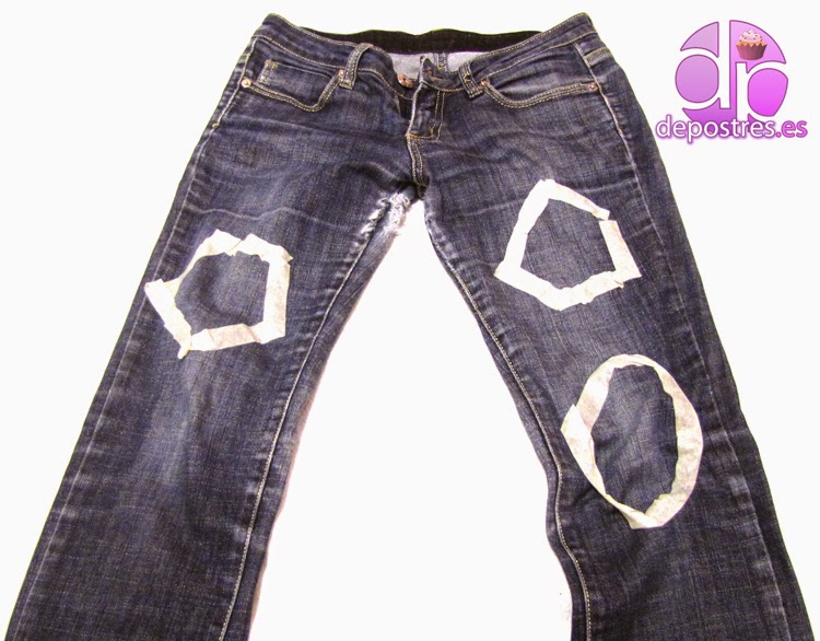 1º marqué con cinta de carrocero el lugar donde me iba a hacer los rotos en los vaqueros.