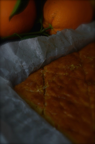 While the cake is still warm and in the mold, cut into diamond shapes about 3 cm wide.