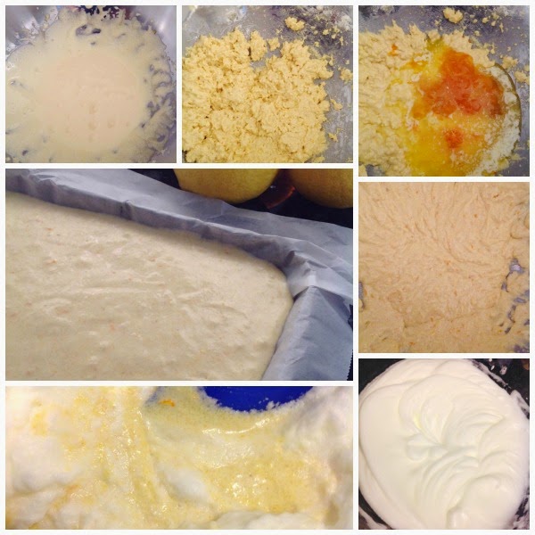 In a separate bowl, beat the egg whites until they form soft peaks and add the egg yolks batter in three additions, lightly stirring in evolving movements.