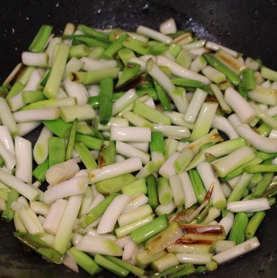 Sofreír lentamente en una sartén o wok y añadir huevos .