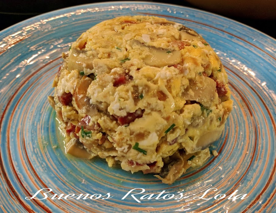 Vamos removiendo y rompiendo los huevos con la cuchara. Al hacerlos así conseguiremos trozos de clara y de yema cuajados por separado. Cuánto mas amarillas sean las yemas más contraste y quedará mas bonito