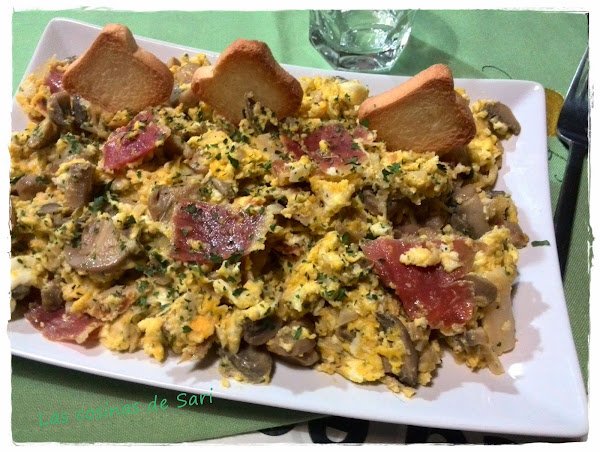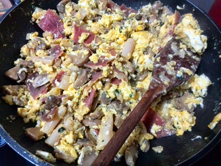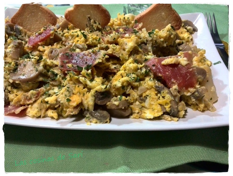 Juntamos todo bien y vamos viendo como se cuajan los huevos. Es cuestión de un par de minutos.