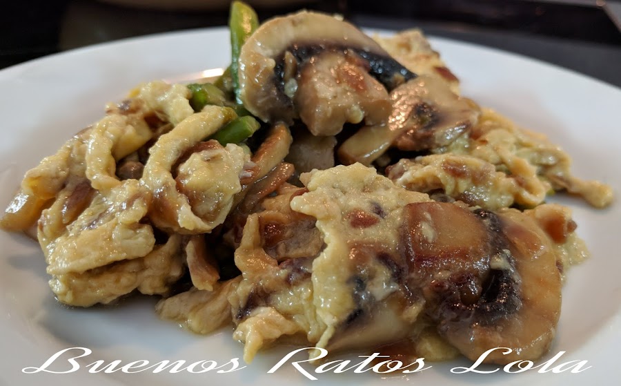 Mientras se van salteando pelamos y cortamos en rodajas los champiñones (no los laves)