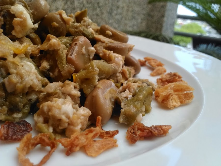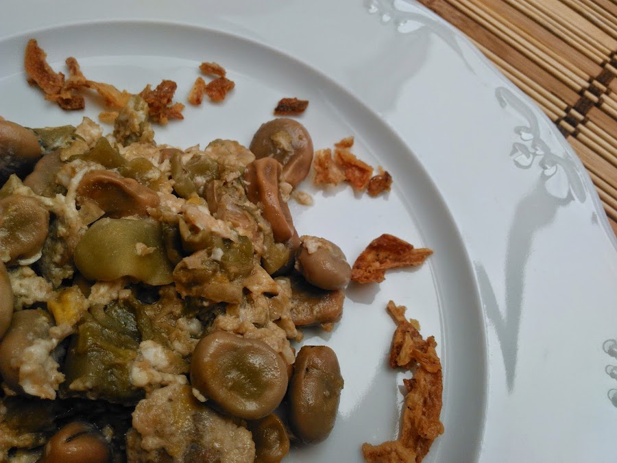 Cuando estén, le añadimos las habas y volteamos, dejándolo durante unos minutos para sofreírlas.