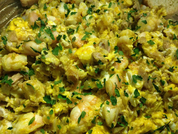 Yo recomiendo que no cuaje del todo. Un buen revuelto se sirve con una apariencia cremosa, pero bueno, como siempre os digo, eso a gusto del consumidor.