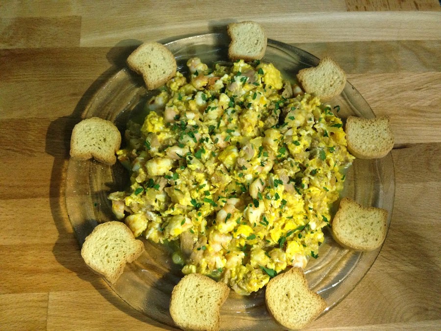 Vamos a preparar con unos ricos huevos camperos Gorrotxategi, un revueltito delicioso de atún y langostinos.