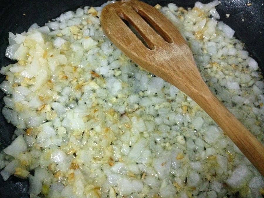 Y los saltearemos en la sartén con el ajo y la cebolla durante medio minuto, una vez la cebolla y los ajos estén bien pochados.