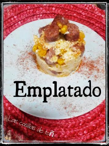 si lo ponemos en un aro de emplatar quedara fantástico solamente tenemos que poner el aro y rellenarlo y arriba poner unas cuantas salchichas de decoración,os quedara un plato de 5 tenedores por lo menos, bueno os animáis hacerlo quiero ver esos platos ...