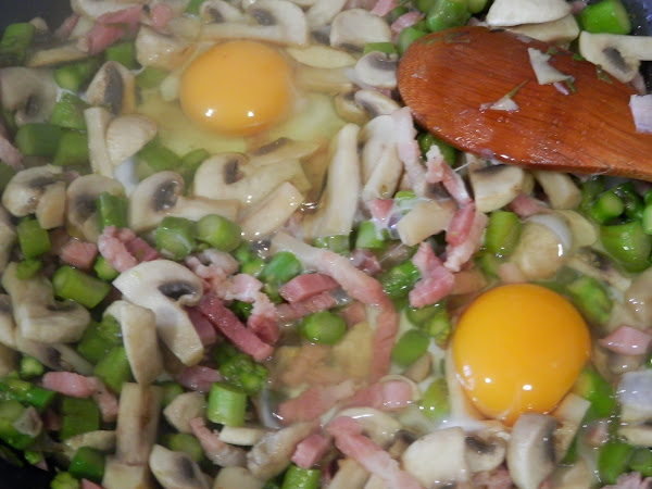 Cuando ya esté todo, añadimos los huevos y revolvemos hasta que quede melosito.