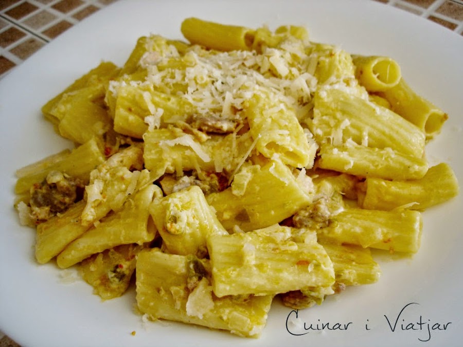 Hervir la pasta, escurrir y añadirla al sofrito, dar unas vueltas para que se mezcle todo bien.