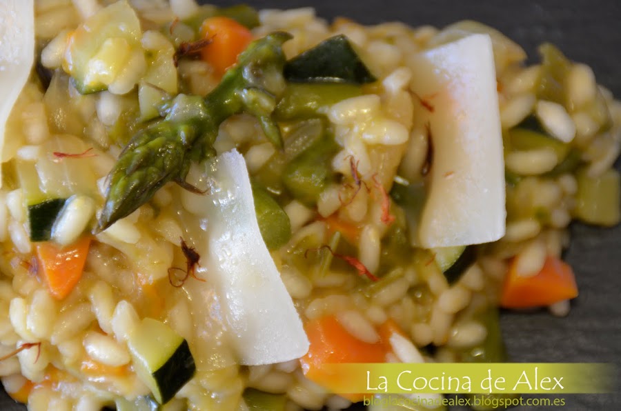 Este fin de semana fuimos al mercado y al ver la verdura que esta de temporada no nos pudimos resistir ha hacer un plato con tanta variedad y colores. Para aprovechar todos los sabores pensamos que un plato ideal seria un risotto.
