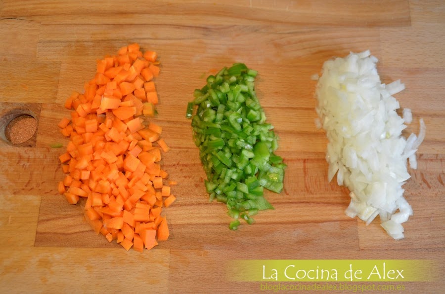 PREPARACIÓN:En primer lugar lo que vamos ha hacer es picar toda la verdura en trozos pequeños y todos mas o menos de la mismo tamaño.
