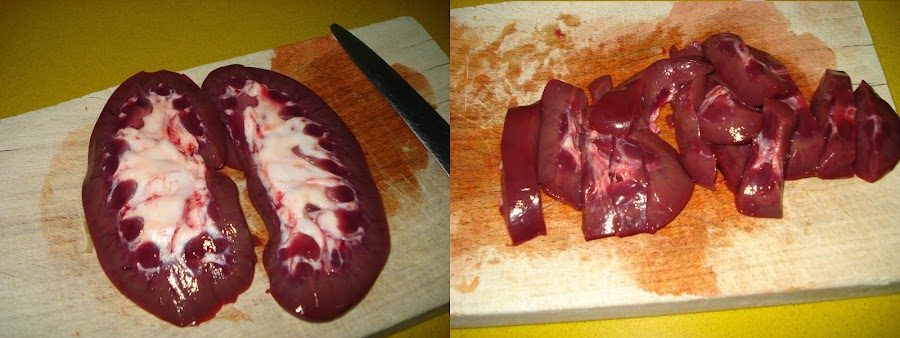 Cortamos en trozos cada una de las partes de los riñones.